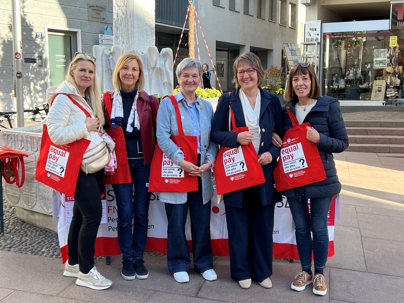 Der Equal Pay Day ist eine europaweite Initiative, um auf die geschlechtsspezifische Lohndifferenz zwischen Frau und Mann hinzuweisen. In Südtirol hat der Aktionstag für Lohngleichheit am Freitag, 17. April stattgefunden. Landesweit werden dazu zahlreiche Infostände mit Informationsmaterial eingerichtet. Auch der SGBCISL hat diese, in Südtirol vom Landesbeirat für Chancengleichheit und dem Frauenbüro organisierte Initiative unterstützt und war an verschiedenen Infoständen vertreten.