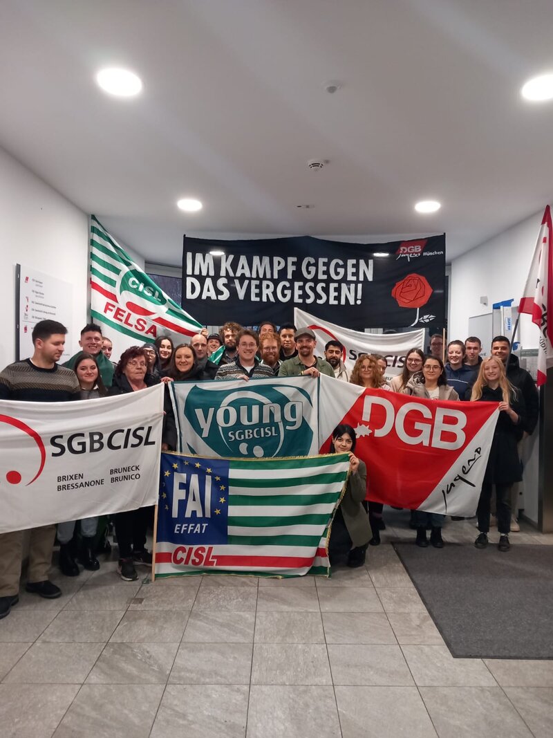 In Erinnerung an den 40. Jahrestag des von Seiten der "Gruppe Ludwig" verübten rechtsterroristischen Brandanschlages auf die Diskothek „Liverpool“ fand dieses Wochenende in München eine Gedenkveranstaltung für Corinna Tartarotti statt, die bei dem Anschlag am 7. Januar 1984 tödlich verletzt wurde. Die DGB-Jugend München hat dabei, gemeinsam mit anderen Jugendorganisationen eine Diskussionsveranstaltung über die vermehrten Angriffe der Rechten auf die Erinnerungskultur organisiert, bei der auch der YOUNG SGBCISL und einige Kollegen und Kolleginnen der CISL Trient teilgenommen haben. Anschließend fand eine Podiumsdiskussion statt, bei der mehrere Experten die Teilnehmer.innen über den Rechtsterrorismus der 80er Jahre und die anhaltende Verwundbarkeit der Gesellschaft durch Rechtsextremismus informierten.
