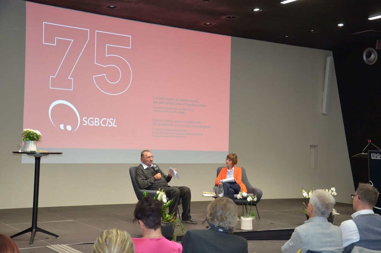 Beim Jubiläum wurde über Kurzinterviews mit den ehemaligen Generalsekretären Italo Ghirigato, Primo Schönsberg, Tila Mair und Anton von Hartungen auf ein Dreivierteljahrhundert Geschichte zurückgeblickt. Sie gingen auf wichtige Etappen in der Geschichte der Organisation ein: die Gründung, die Besetzung des Sitzes im Jahr 1974, die Erfahrung der Einheitsgewerkschaft in den 70er und 80er Jahren, die Dezentralisierung der Organisation ab den 80er Jahren, der Ausbau des Dienstleistungsangebots.