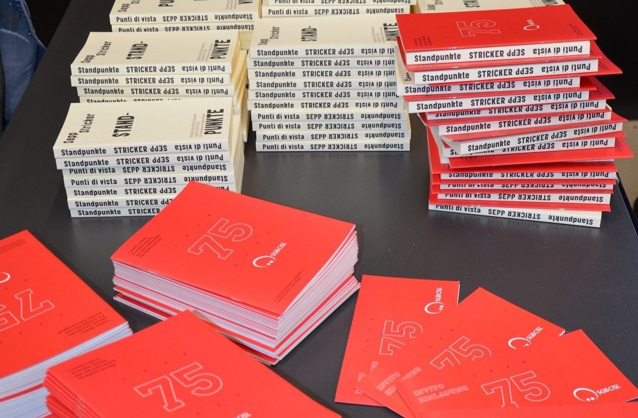 Die zahlreichen Teilnehmer/innen an der Jubiläumsfeier haben ein besonderes Präsent erhalten: das frisch gedruckte Lesebuch mit einer Auswahl von Artikeln, die Sepp Stricker 20 Jahre lang unter der Rubrik „Standpunkt“ für die SGBCISL-Mitgliederzeitschrift „Solidarität“ beigesteuert hat – die Publikation ist Dank und Anerkennung für den wertvollen Beitrag, den der ehemalige Arbeiterpriester und Metallergewerkschafter über die Jahre für die Organisation geleistet hat.