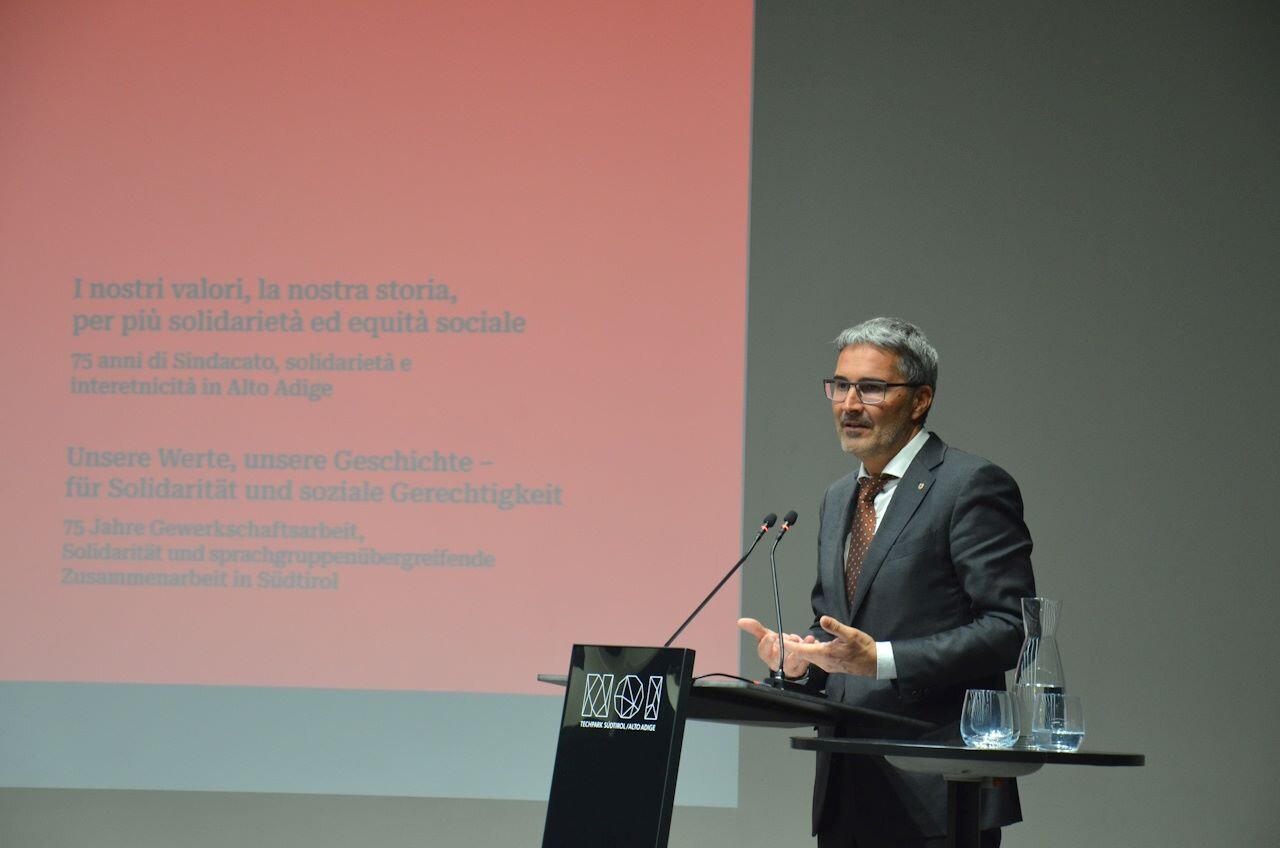 Es werde die Gewerkschaft auch in Zukunft brauchen, gerade wenn es um die Verteidigung von Rechten und die Themenbereiche Umverteilung, Gerechtigkeit und Gleichheit geht, damit in diesen Zeiten der Veränderung niemand zurückbleibt, so Landeshauptmann Arno Kompatscher in seinem Grußwort.
