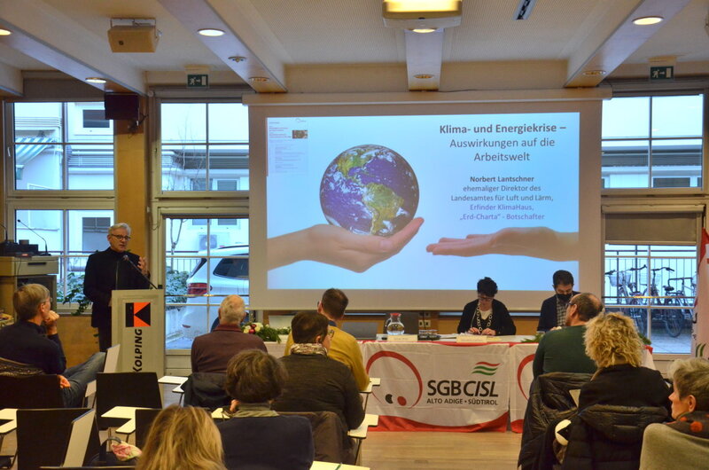 Die Gewerkschaft will als Interessenvertretung die Veränderungen in der Arbeitswelt und in der Gesellschaft mitgestalten. Dies gilt auch für die aktuellen und so wichtigen Themen wie Umweltschutz, Energiewandel und Nachhaltigkeit. Um diese Themen und die Auswirkungen auf die Arbeit zu erörtern, hat der SGBCISL heute im Kolpinghaus in Bozen eine Tagung mit Delegierten abgehalten. Eingegangen wurde dabei insbesondere auf die Problematik der Klimakrise und den Klimaplan Südtirol 2040. Für die Gewerkschaft geht es darum, zu diese Veränderung zu begleiten und sozial zu gestalten.