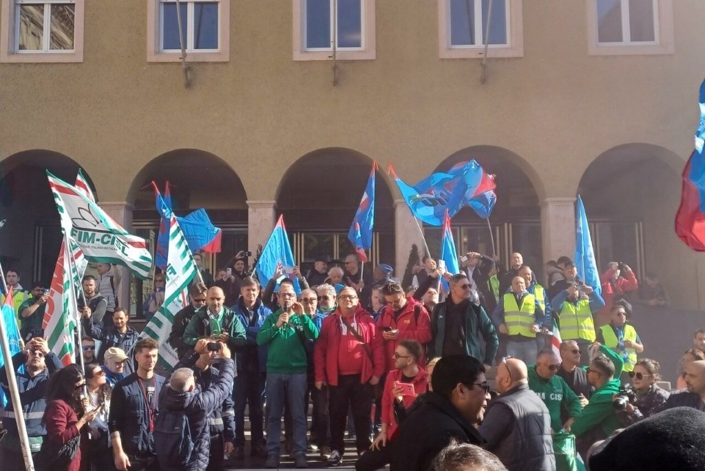 Auf dem Landhausplatz haben Fachgewerkschaftssekretäre, Delegierte und Betriebsräte lautstark mehr Engagement von der Politik für die Sicherung der Arbeitsplätze und die Zukunft des Werks gefordert. Anschließend ist eine Delegation von Landesrat Marco Galateo empfangen worden. Die Politik könne die Neu-Ausschreibung des Werksgrundes wie von den Gewerkschaften gefordert nicht zurückziehen, deshalb fordern sie in Erwartung weiterer Überprüfungen aus Rom zumindest eine Aussetzung der Ausschreibung.