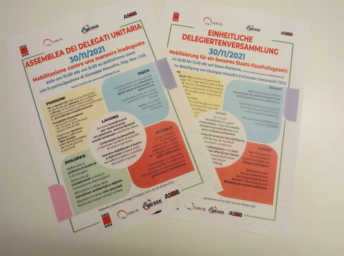 I Sindacati si mobilitano a livello nazionale contro una Manovra ritenuta inadeguata: “La bozza di legge di bilancio per il 2022 non dà risposte sufficienti per contrastare le diseguaglianze sociali e economiche del Paese”. Per questa ragione, CGIL CISL UIL, hanno avviato un percorso di mobilitazione per migliorarne i contenuti nel solco della piattaforma unitaria, soprattutto per quanto riguarda i temi quali la previdenza, il fisco, il lavoro, sviluppo e sociale. A livello provinciale si è tenuta oggi l’Assemblea unitaria dei delegati in modalità online delle quattro confederazioni sindacali altoatesine CGIL/AGB, SGBCISL, UIL-SGK e ASGB. Hanno preso parte all’iniziativa oltre 80 persone fra delegati e dirigenti sindacali.